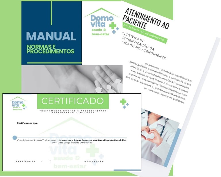 Oferecemos treinamento especializado em normas e procedimentos no atendimento domiciliar, garantindo um serviço de alta qualidade, com CERTIFICAÇÃO ao final do treinamento, reconhecendo a capacitação profissional.