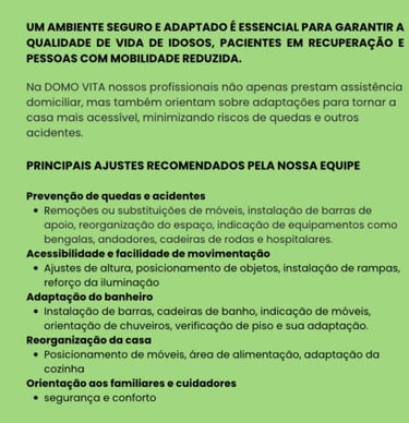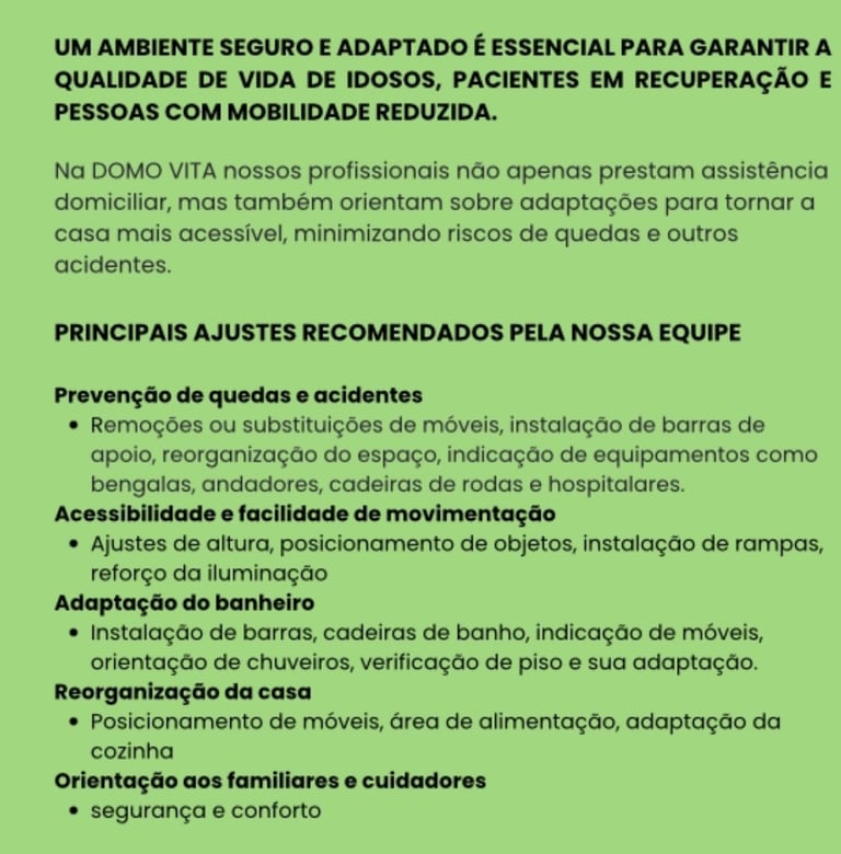 Na DOMO VITA o bem-estar de nossos pacientes é o ponto principal. Elaboramos projeto de ambientação da sua residência, buscando a segurança e a acessibilidade do paciente no conforto do seu lar.