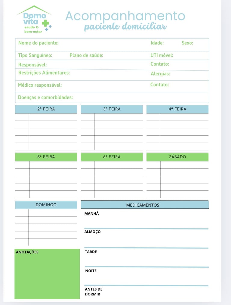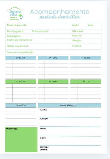 Na DOMO VITA acreditamos que a qualidade de vida vai além dos produtos e serviços. Por isso oferecemos diferenciais exclusivos para ajudar familiares e cuidadores na organização e no acompanhamento da rotina do paciente, garantindo mais segurança e tranquilidade.